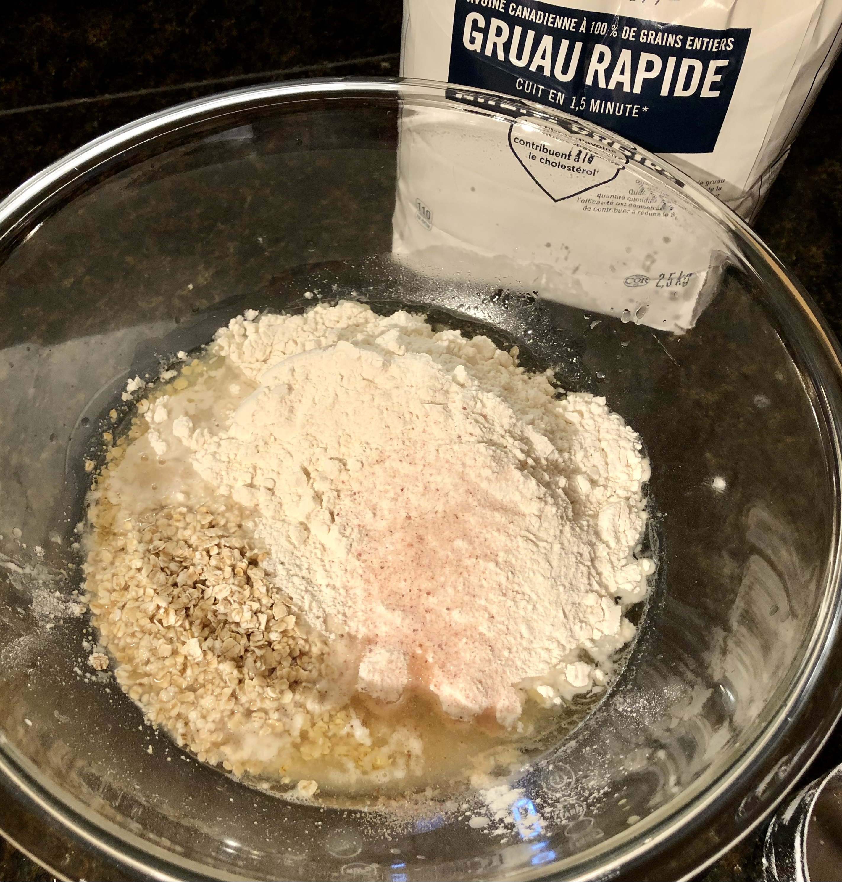 제일 먼저 할일은 이스트 물을 만들어 준다. 그리고 제일 중요한 것은 계량. 눈대중으로 컵으로 해도 되지만 이왕이면 저울을 사용한다. 이스트 물은 따뜻한 물에 이스트와 이스트의 밥이 되어줄 먹이 - 나는 메이플 시럽을 썼다, 꿀도 좋고 설탕도 괜찮고-를 물에 섞어 둔다. 이스트가 활동을 시작하면 - 부글부글 기포가 올라온다 - 오일류를 넣는다. 나는 버터보다 아보카도 오일과 같은 식물성 오일을 선호한다. 오일까지 넣어 잘 섞어 두고 이번에는 가루류를 준비한다.